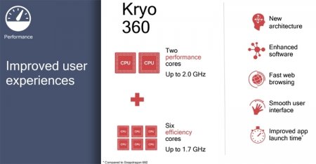 «Сердцем» послужит процессор Snapdragon 670. Этот чип содержит восемь вычислительных ядер Kryo 360: два из них функционируют на тактовой частоте до 2,0 ГГц, другие шесть — на частоте до 1,7 ГГц.