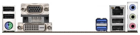 На задней панели платы находятся порты PS/2 для мыши и клавиатуры, USB 2.0 (4 шт.), USB 3.0 (2 шт.), RJ-45, трио Mini-Jack, видеовыходы D-Sub, DVI-D и HDMI.