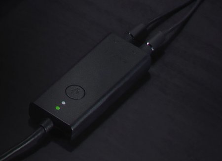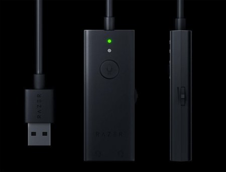 В комплект поставки входит модуль Razer USB Audio Enhancer — аналого-цифровой преобразователь с интерфейсом USB. К этому блоку через 3,5-миллиметровые аудиоразъёмы можно подключить сразу две гарнитуры.