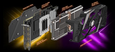 За обдув устройств отвечают три 100-мм вентилятора, являющиеся частью разных модификаций системы охлаждения WindForce Stack 3X. Центральный «пропеллер» находится ниже двух других и примечателен нестандартной формой лопастей. У видеокарт класса GeForce RTX 2080 имеется семь медных тепловых трубок с технологией прямого контакта. В свою очередь, у GeForce RTX 2080 Ti таковых может быть и больше, однако это маловероятно. Система питания у карт Aorus GeForce RTX 2080 (Xtreme) 8G насчитывает «12 + 2» фазы. У моделей с суффиксом «Ti» каналов питания должно быть по крайней мере на треть больше. За вывод изображения отвечают по три разъёма DisplayPort 1.4 и HDMI 2.0b, и единичный USB 3.1 Type-C/VirtualLink. При условии регистрации покупки на сайте gigabyte.com гарантия на все вышеупомянутые видеокарты составит четыре года.