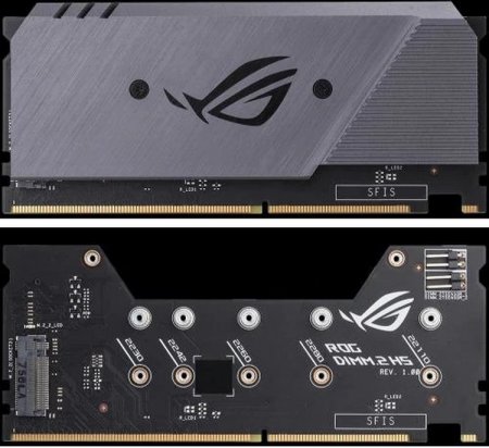 Рядом со слотами для модулей памяти имеется фирменный слот ROG DIMM.2, в который вставляется специальная плата с двумя слотами M.2 и радиаторами для них. Кроме того, на самой плате имеется ещё один слот M.2, также прикрытый радиатором. Ещё для подключения устройств хранения данных Maximus XI Apex располагает шестью портами SATA III. Набор слотов расширения включает три PCI Express 3.0 x16 и один PCI Express 3.0 x1.