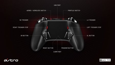 ASTRO выйдет на рынок игровых контроллеров: компания представила C40 TR Controller, который официально лицензирован для PlayStation 4, хотя и будет совместим с Windows. Разработчик отмечает, что его продукты изменили киберспорт, предоставив игрокам расширенные возможности управления. C40 TR — лишь очередной шаг в данном направлении, а продукт является результатом двухлетней работы. Среди особенностей устройства можно отметить заменяемые аналоговые стики и модули D-Pad; настраиваемые, эргономичные и переназначаемые (раскладки сохраняются прямо на контроллере) тыльные кнопки; а также утилиту ASTRO Customization Software, которая существенно увеличивает возможности настройки чувствительности триггеров и стиков, эквалайзера, аудиовыхода, микрофона и так далее. Устройство поддерживает работу как в проводном, так беспроводном режимах (до 12 часов автономности), обеспечивает в обоих случаях качественный звук через 3,5-мм разъём, а также поставляется в комплекте с футляром для удобной перевозки и хранения. В общем, как можно убедиться из описания, этот контроллер явно нацелен на энтузиастов и профессиональных игроков и пытается стать своего рода контроллером Xbox Elite для PlayStation 4. Уже сейчас за $199 доступен предварительный заказ C40 TR Controller с официального сайта ASTRO — полноценный же запуск намечен на март 2019 года.
