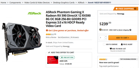Правда, в данном случае речь идёт об акции, по окончании которой такая стоимость может не сохраниться. Но даже и неакционные Radeon RX 580 в том же магазине Newegg.com доступны по $199, а на европейском рынке — по €169.