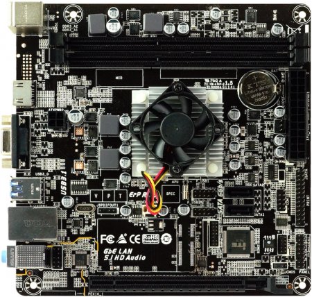 Предусмотрены два слота для модулей оперативной памяти DDR3/DDR3L-800/1066/1333/1600 суммарным объёмом до 16 Гбайт. Есть два стандартных порта SATA 3.0 для подключения накопителей.