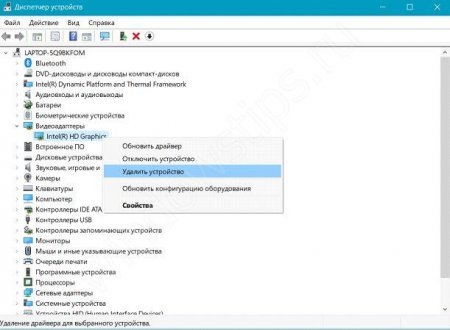 - Нажмите ПКМ по видеокарте и выберите «Удалить устройство»