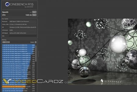В многопоточном тесте Cinebench R15 процессор Ryzen 5 3600 показал результат в 1443 балла, что сопоставимо с результатом восьмиядерного процессора Intel Core i7-9700K. При этом цена последнего чуть ли не вдвое больше — $374.