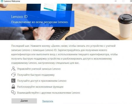 На технике Lenovo выскочил помощник, предлагающий создать с системе учетную запись с дополнительными функциями и возможностью общения между пользователями.