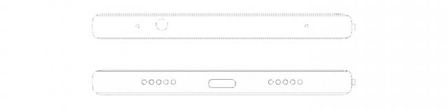 Как можно видеть на иллюстрациях, конструкция аппарата предусматривает использование дисплея с узкими боковыми и верхней рамками. Не исключено, что в область экрана будет интегрирован сканер отпечатков пальцев.