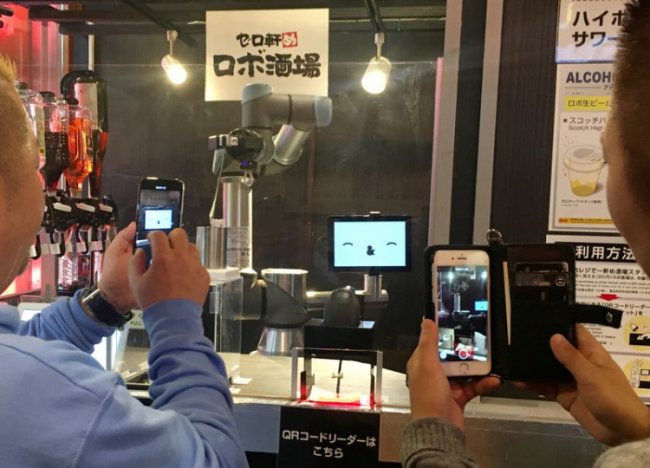 В токийском пабе японской сети ресторанов Yoronotaki начали тестирование робота-бармена. Изготовленный компанией QBIT Robotics робот способен за 40 секунд налить пиво и за минуту смешать коктейль. Для мониторинга клиентов он использует четыре камеры, анализируя выражение их лиц с помощью искусственного интеллекта (ИИ).