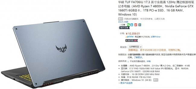 Кроме того, на китайском Amazon предлагается 17,3-дюймовый ноутбук ASUS TUF Gaming FA706IU на чипе Ryzen 7 4800H, который оснащён видеокартой GeForce GTX 1660 Ti. Он оценён в 10 359 юаней, что примерно равно $1490 или почти 112 000 рублей, по курсу, актуальному на момент публикации данного материала.