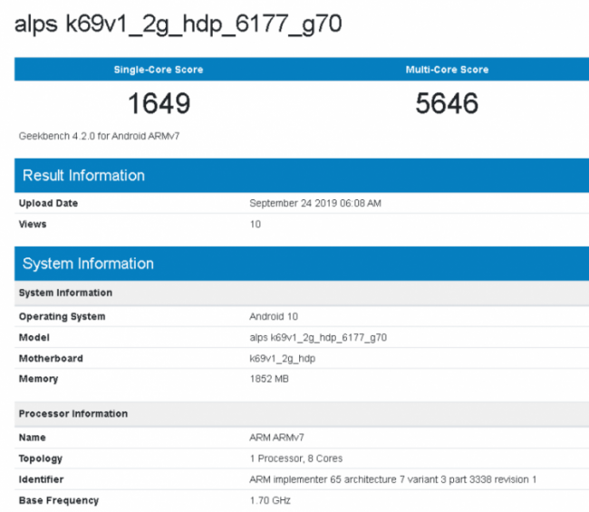 Маркировка чипсета заставляет усомниться в том, что перед нами не Helio G70. Однако этим процессором оснащён Realme C3, чипсет которого идентифицируется как MT6769V/CB и имеет тактовую частоту 1,7 ГГц. Чип Redmi Note 9 имеет маркировку MT6769V/CZ и повышенную на 100 МГц тактовую частоту. Вероятно, процессоры будут различаться только тактовой частотой, как это было в случае со Snapdragon 625 и 626.