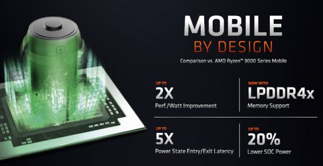 В целом, новые однокристальные системы потребляют на 20 % меньше энергии и выполняют на 15 % больше инструкций за такт. Новые продукты представлены в двух сериях: Ryzen 4000U для тонких ноутбуков и Ryzen 4000H для игровых и творческих решений. Первые отличаются более низкими базовыми частотами и энергопотреблением не выше 15 Вт, тогда как у более производительной серии TDP составляет 45 Вт. Компания также готовит серию Pro для профессиональных и тонких компьютеров.