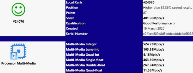 В SiSoftware была оценена производительность образца Tiger Lake-U в работе с мультимедиа. Оценка составила 401,96 Мп/с. Для сравнения, четырёхъядерный Core i5-9400H набирает в этом же тесте около 350 Мп/с. Получается, будущий Tiger Lake-U более чем на 14 % производительнее. Можно возразить, что упомянутый Core i5 относится к 14-нм процессорам Coffee Lake-H, то есть несёт старую микроархитектуру Skylake, да и работает с более низкими частотами. Но в то же время это процессор с более высоким уровнем TDP в 45 Вт, тогда как процессоры Intel Core U-серии обычно имеют TDP в 15 Вт. К слову, 15-Вт флагманский Core i7-1065G7 (Ice Lake) набирает в этом же тесте до 380 Мп/с.