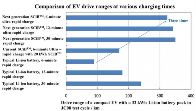 В пресс-релизе компания Toshiba не раскрывает характеристики аккумуляторов, которые пошли в гибридные автомобили Nissan и Mitsubishi, а это было бы интересно. Дело в том, что в 2019 финансовом году, который для Toshiba завершается в следующую среду, компания обещала начать выпуск нового поколения аккумуляторов SCiB с отрицательным электродом из титан-ниобиевого оксида (три верхних графика на картинке ниже).