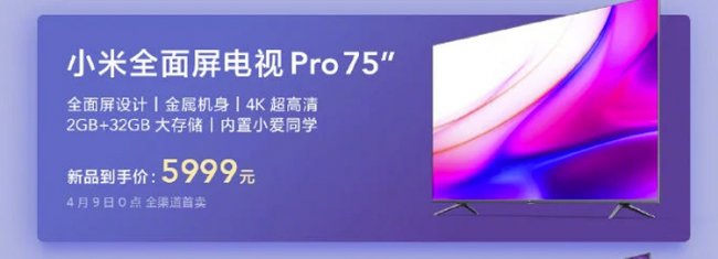 Ориентировочная цена телевизора Xiaomi Mi Full Screen TV Pro с диагональю 75 дюймов — 850 долларов США.