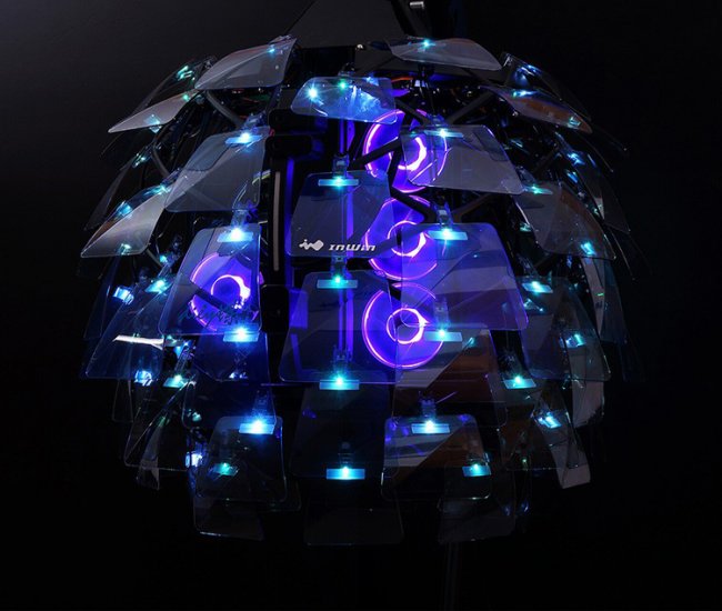 Компания In Win раскрыла полные характеристики уникального компьютерного корпуса Di?y, первая информация о котором была обнародована в январе в рамках выставки потребительской электроники CES 2020. Модель Di?y не имеет аналогов. Устройство выполнено в виде блока с массивом лепестков, наделённых подсветкой. Вся конструкция подвешена на специальной подставке. О внешнем виде Di?y можно судить по представленным изображениям. В целом, это решение выглядит просто невероятно. Общие габариты конструкции также впечатляют — 2300 ? 1000 ? 1500 мм. В корпусе могут использоваться материнские платы типоразмера E-ATX, ATX и Micro-ATX. Предусмотрены восемь слотов расширения, а длина дискретных графических ускорителей может достигать 360 мм. Подсистема хранения данных может объединять четыре накопителя в форм-факторе 3,5 или 2,5 дюйма. На интерфейсную панель выведены два порта USB 3.0, симметричный разъём USB 3.1 Gen 2 Type-C и стандартные аудиогнёзда. Допускается применение воздушной и жидкостной системы охлаждения. Во втором случае могут применяться радиаторы типоразмера до 360 мм. Высота процессорного кулера не должна превышать 170 мм. О том, когда и по какой цене In Win Di?y поступит в продажу, ничего не сообщается, но определённо можно сказать, что стоить новинка будет немало.