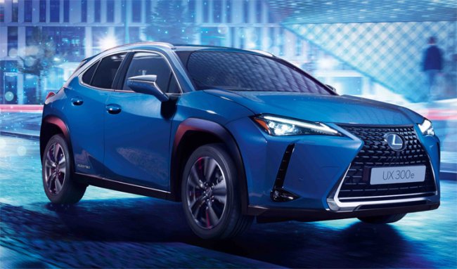 Благодаря низкому центру тяжести — за счёт расположения аккумуляторной батареи и электродвигателя в самой нижней части кузова — модель UX 300e имеет превосходные характеристики управляемости. Мощность составляет 150 кВт, крутящий момент — 300 Н·м. Запас хода на одной подзарядке блока батарей ёмкостью 54,3 кВт·ч достигает 400 км.