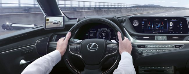 Ещё одна европейская новинка — бизнес-седан Lexus ES 300h. Особенность этой модели — боковые камеры и дисплеи, заменяющие традиционные наружные зеркала заднего вида. Благодаря встроенным нагревательным элементам обеспечена высокая практичность системы вне зависимости от дорожной и климатической ситуации. В то же время продуманное расположение объектива, утопленного вглубь корпуса, обеспечивает эффективную защиту от дождя или снега. Размер экранов, расположенных у основания стоек крыши, составляет 5 дюймов по диагонали.