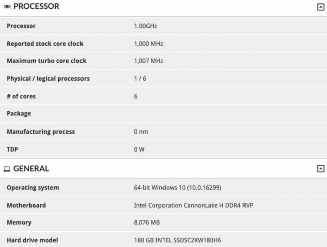 Известный источник утечек с псевдонимом _rogame обнаружил в базе данных 3DMark записи о тестировании двух неведомых процессоров семейства Cannon Lake-H. По принадлежности к данному семейству можно сделать вывод, что они должны были стать первыми 10-нм чипами Intel для производительных мобильных компьютеров.