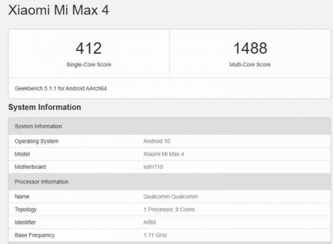 Компания Xiaomi, если верить сетевым источникам, в текущем году анонсирует смартфон Mi Max 4. Информация об этом аппарате появилась в базе данных бенчмарка Geekbench.