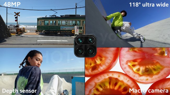 Тыльная квадрокамера: 48-Мп датчик Samsung GM1 с диафрагмой f/1,79, PDAF, EIS и размером пикселей 0,8 мкм (1,6 мкм Quad Bayer); 8-Мп сверхширокоугольный модуль с диафрагмой f/2,2; 2-Мп макромодуль и 2-Мп датчик глубины с диафрагмой f/2,4; светодиодная вспышка;