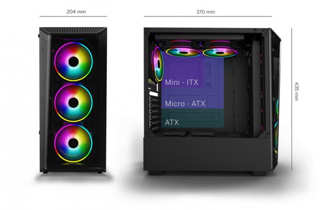 Габариты корпуса составляют 370 ? 204 ? 435 мм. Фронтальная панель разъёмов представлена одним USB 3.0, двумя USB 2.0, а также двумя аудиоразъёмами для наушников и микрофона.