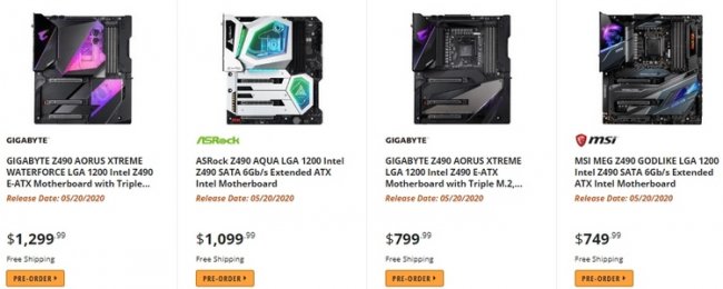 Крупные зарубежные онлайн-магазины сегодня начали принимать предварительные заказы на новые материнские платы с процессорным разъёмом LGA 1200 для чипов Comet Lake-S. Правда, пока доступны лишь модели на флагманской системной логике Intel Z490.