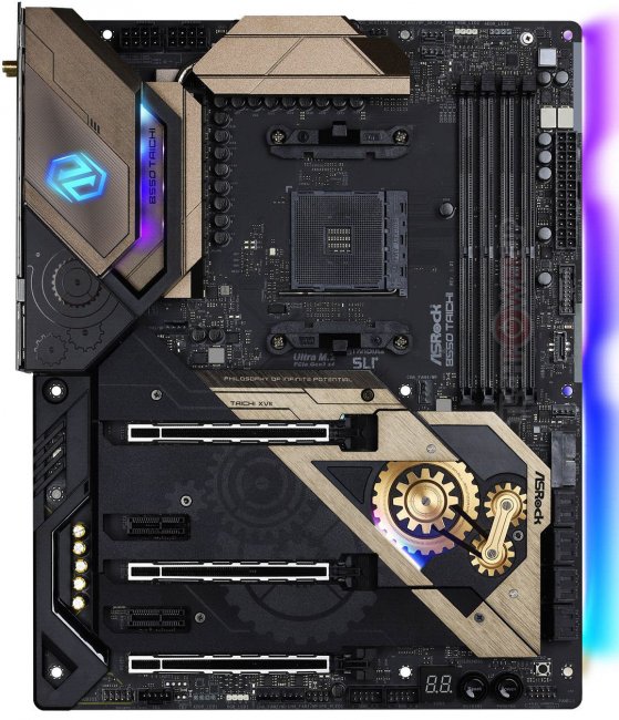 Многие производители материнских плат уже представили новинки на чипсете AMD B550. Некоторые готовы предложить весьма продвинутые характеристики, массивные подсистемы питания и до трёх разъёмов PCIe x16. Поддержка SLI и Crossfire зависит от конкретного производителя материнской платы.