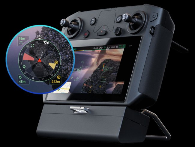 Пульт M300 RTK оснащён дисплеем полётных данных для получения пилотом информации о полете, навигации, препятствиях, расположении и скорости дрона, скорости и направления ветра. Обновлена и карта для удобства просмотра траектории, отмеченных точек и проекции домашней точки.