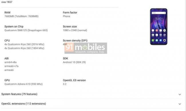 Китайская компания Vivo готовит к выпуску смартфон среднего уровня X50 Lite: информация об этом аппарате, как сообщают интернет-источники, появилась в базе Google Play Console. Информация сайта - «print-prime.ru» Кремниевое «сердце» новинки — процессор Snapdragon 665 разработки Qualcomm. Чип содержит восемь вычислительных ядер Kryo 260 с тактовой частотой до 2,0 ГГц и графический ускоритель Adreno 610. Указано разрешение дисплея — 2340 ? 1080 пикселей, что соответствует формату Full HD . Пиксельная плотность составляет 480 PPI (точек на дюйм). Как можно видеть на изображении (см. ниже), в верхней части экрана предусмотрен небольшой каплевидный вырез для фронтальной камеры. Смартфон несёт на борту 8 Гбайт оперативной памяти. Применена операционная система Android 10. В тыльной части корпуса расположится многомодульная камера, но информации о разрешении датчиков на данный момент нет. По оценкам Strategy Analytics, в первом квартале нынешнего года по всему миру было отгружено 274,8 млн смартфонов. Это на 17 % меньше результата годичной давности, когда поставки равнялись 330,4 млн штук. Vivo является одним из крупнейших игроков рынка. Аппараты компании весьма популярны в том числе в России.