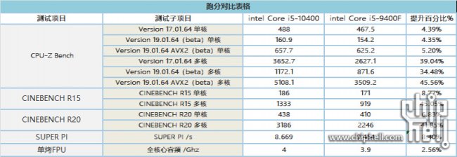 Китайский источник приводит данные по результатам тестирования Core i5-10400 в различных синтетических тестах, а именно, разные версии и режимы встроенного бенчмарка утилиты CPU-Z, Cinebench R15 и R20, Super PI и AIDA. Процессор тестировался на материнской плате MSI Z490 Tomahawk с памятью DDR4-3200. Для сравнения также приведены результаты Core i5-9400F, который был предшественником новинки, лишённым поддержки технологии Hyper-Threading.