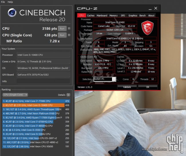 Обзоры новых настольных процессоров Comet Lake-S будут опубликованы только на следующей неделе, 20 мая. Однако подробностей о производительности новых чипов с каждым днём становится всё больше. На этот раз на китайском форуме ChipHell были опубликованы результаты тестирования Core i5-10400 в синтетических тестах.