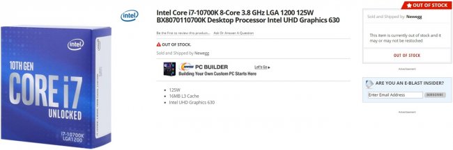 На старте продаж магазины будут предлагать довольно ограниченный ассортимент настольных процессоров Intel Core десятого поколения. Конечно же, в первых рядах не могло не оказаться флагманского десятиядерника Core i9-10900K, который доступен у наибольшего числа ретейлеров.