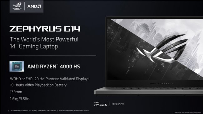В то же время многие пользователи ожидают появления именно игровых ноутбуков на базе Ryzen 4000, так как в таких конфигурациях преимущества архитектуры Zen 2 должны проявляться в большей степени. Модельный ряд 7-нм процессоров Renoir помимо 15-ваттных модификаций U-серии включает также и 35/45-ваттные модели H-серии, в которую входят мощные шести- и восьмиядерники с максимальными частотами до 4,3–4,4 ГГц. Одним из первых ноутбуков такого рода должен был стать ASUS Zephyrus G14, который был анонсирован ещё на выставке CES 2020 в самом начале года.