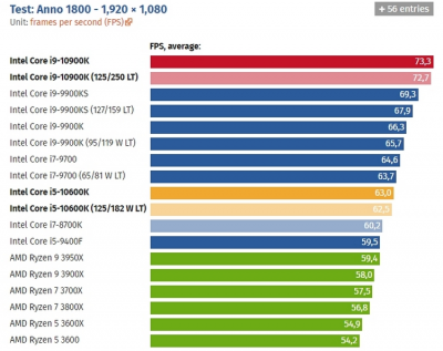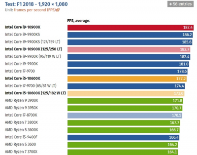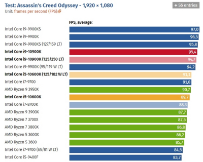 Игровые тесты Intel Core i9-10900К в разрешении Full HD