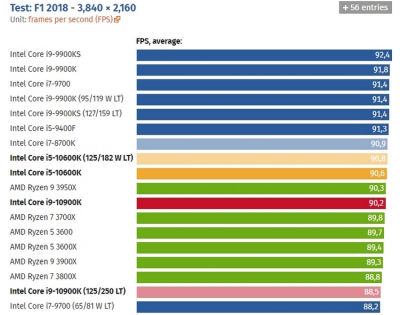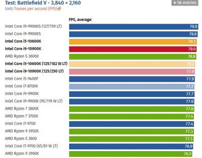 Игровые тесты Intel Core i9-10900К в разрешении 4K