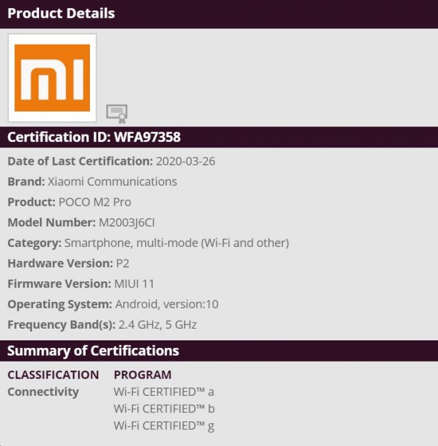 Сертификация Wi-Fi Alliance и Bluetooth SIG означает, что официальная презентация Poco M2 Pro состоится в ближайшее время. Вероятно, смартфон дебютирует до конца текущего квартала.