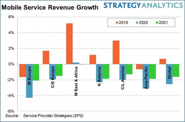 Эксперты Strategy Analytics считают, что выручка от предоставления беспроводных сервисов в нынешнем году уменьшится на 2,6 % по сравнению с 2019-м. В следующем году ожидается лишь незначительное улучшение ситуации.