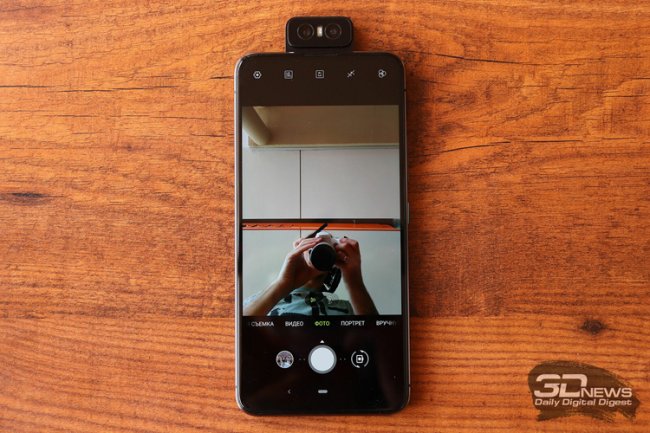 Новинка придёт на смену модели Zenfone 6, показанной на изображениях. Главной особенностью этого устройства является двойная поворотная камера, способная откидываться на 180 градусов. Фронтальной камеры у смартфона нет.