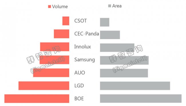 Китайская компания BOE Technology, как отмечено выше, в рейтинге поставщиков LCD заняла первое место с объёмом отгруженных панелей на уроне 8,7 млн штук, что составило годовой рост 13 %. Компания LG Display поставила 6,9 млн панелей или на 11 % меньше, чем год назад.