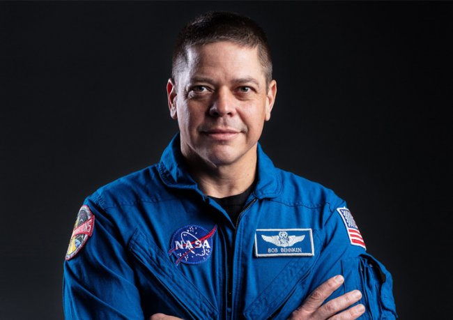 Внутри корабля находятся два астронавта в фирменных скафандрах SpaceX. Бывший лётчик-испытатель Боб Бенкен (Bob Behnken) начал свою карьеру в NASA в 2000 году и успел побывать в космосе два раза. В ходе каждой миссии он выполнил по 3 выхода в открытый космос и провёл там суммарно 37 часов. Бенкен отвечает за взаимодействие с центром управления полётом и будет проводить стыковку и отстыковку корабля.
