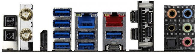 Для подключения устройств хранения данных на W480 Creator имеется три слота M.2, каждый с четырьмя линиями PCIe 3.0, а также шесть портов SATA III. Стоит отметить и наличие сразу двух портов Thunderbolt 3 (USB Type-C), 10-гигабитного сетевого интерфейса на базе AQuantia AQC107, 2,5-гигабитного Intel i225-LM и беспроводного контроллера Intel AX201 с Wi-Fi 6 и Bluetooth 5.0. Звуковая подсистема новинки построена на кодеке Realtek ALC1220 и оснащена ЦАП ESS Sabre 9218.