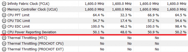 Специфика обратной связи по энергопотреблению, как поясняет опытный оверклокер на страницах форума HWiNFO, заключается в использовании центральным процессором AMD Ryzen данных об энергопотреблении, предоставляемых материнской платой. Данные от контроллера VRM материнской платы проходят калибровку на уровне BIOS, и на этом этапе производитель платы может повлиять на передаваемую процессору величину его энергопотребления. Эту величину, в частности, можно занизить, и это заставит процессор через технологию Precision Boost 2 автоматически повысить собственную частоту и напряжение сильнее, чем это произошло бы при подаче честной информации об энергопотреблении.