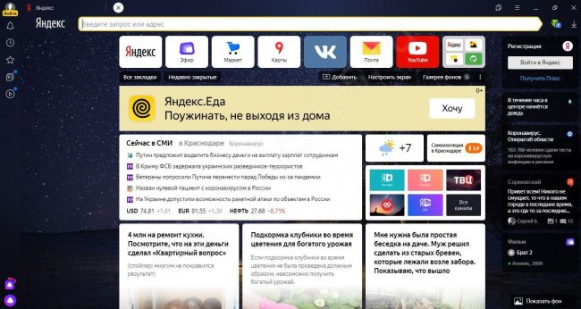 Функции веб-проводника Yandex: