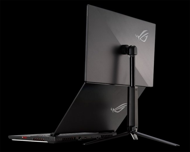 Новинка располагает симметричным портом USB Type-C, к которому может быть подключён ноутбук. Кроме того, предусмотрен интерфейс Micro HDMI 2.0. Комплект включает подставку ROG Tripod.