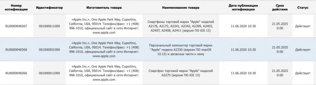 В базе данных Евразийской экономической комиссии (ЕЭК) были зарегистрированы сразу несколько новых продуктов компании Apple. Речь идёт о девяти новых моделях смартфонов iPhone, а также об одном компьютере серии Mac.