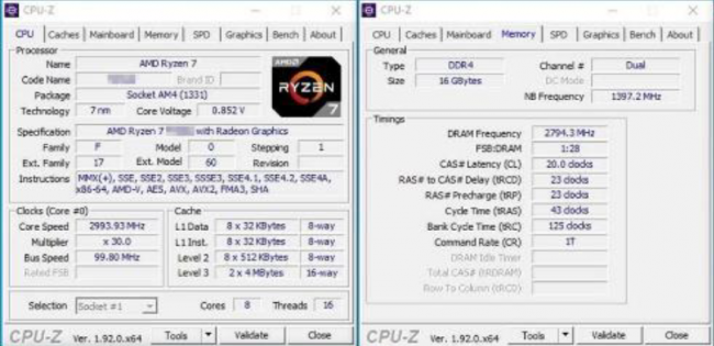 также поделился скриншотом технических характеристик гибридного процессора Ryzen 7 4700G в программе CPU-Z. Базовая тактовая частота 7-нм чипа Renoir составляет 3,0 ГГц, максимальная (при автоматическом разгоне) — 4,4 ГГц. Процессор использует разъём Socket AM4. Подтверждается здесь и то, что память работала с эффективной частотой почти в 5600 МГц и задержками CL20-23-23-43.
