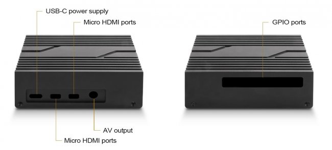 В SST-PI02B предусмотрены отверстия для разъёмов USB, micro-HDMI, сетевого интерфейса, а также группы контактов GPIO — для них отверстие расположено на тыльной стороне. Подключится к ним можно с помощью кабелей ленточного типа.