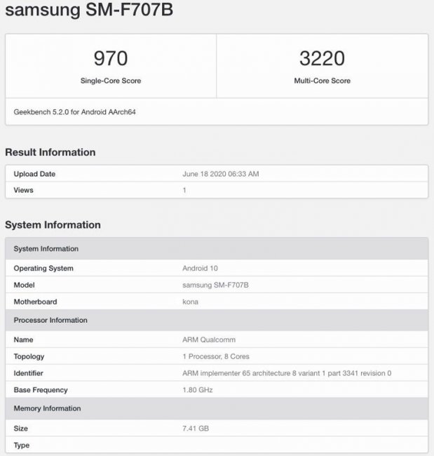 Популярный тест Geekbench регулярно становится источником информации о готовящихся к выпуску новинках из мобильного мира. На этот раз в бенчмарке показался смартфон-раскладушка с гибким экраном Samsung Galaxy Z Flip 5G.
