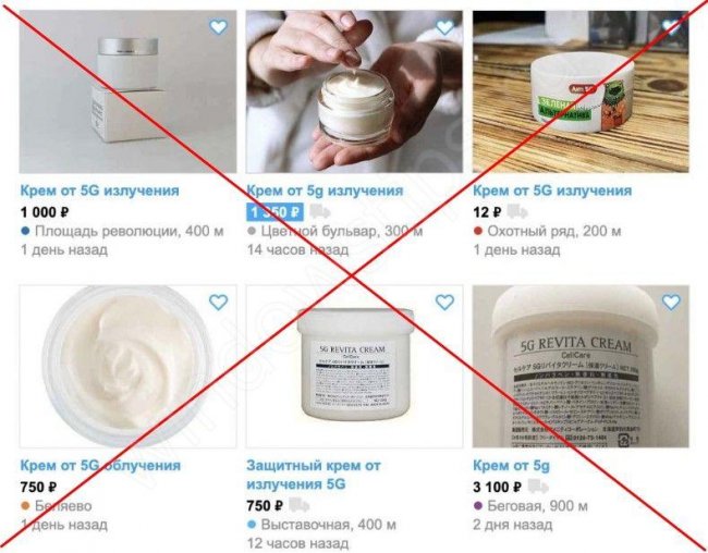 Кроме того, появились так называемые кремы от 5G излучения, которые якобы отталкивают вредные лучи и тем самым помогают защититься от излучения. Стоимость таких «чудо-средств» находится в диапазоне от 500 до 8000 рублей. Люди охотно верят и покупают такие изделия с 5G-защитой. Эксперты уверяют, что крем против 5G — обычный маркетинговый ход. С его помощью нельзя защититься от болезни.